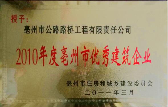亳州市公路路橋工程有限責(zé)任公司是亳州市具有國家二級總承包資質(zhì)的公路工程施工企業(yè),它的前身是亳州市公路工程處。